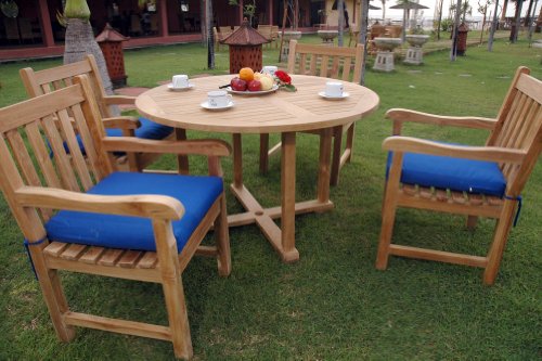 Teak Outdoor Patio Set - Round Table with 4 Classic Dining Armchairs Review