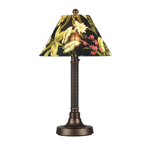 Patio Living Concepts Bahama Weave 34" Outdoor Table Lamp - Thin Body Made of molded thermoplastic, with a thin PVC wicker body and a high-set bronze base, this beautiful table lamp is designed for all-weather use outdoors. It is available with your choice of a rich Bronze or soft Bisque base and four different wicker body ( frame ) colors: Red Castagno, Mocha Cream, Mojavi, or Dark Mahogany. You can also choose from a variety of weatherproof Sunbrella fabric shades. Made of 100% solution dyed acrylic fibers, this fabric is designed to withstand the elements while keeping its colors. Sunbrella lamp shade covers wash easily and resist soil and mildew. Features: All weather PVC wicker woven body Weatherproof Sunbrella fabric shades Portable Uses one 100-watt lightbulb 16' weatherproof cord and plug Read more...
