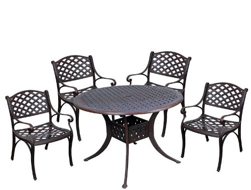 Free Shipping 5pc Aluminum Patio Round Dining Table and Chairs Set in Brown @ Amazon.com