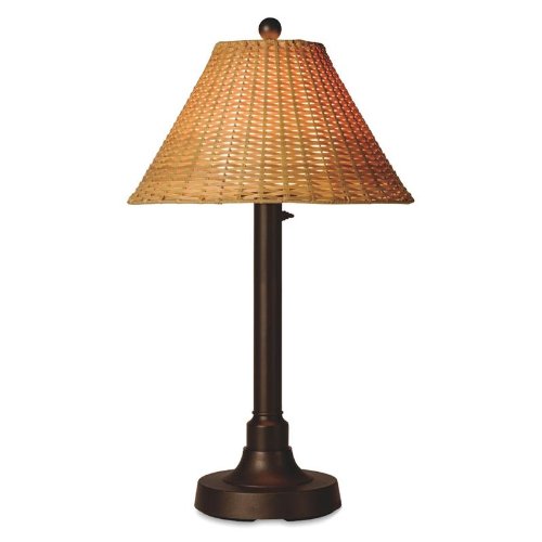 All weather hand woven PVC wicker shades highlight these elegant weatherproof lamps. All resin construction with heavy weighted bases and two level dimming switch ensure these lamps will enhance any outdoor living are. Unbreakable polycarbonate light bulb enclosure allows use of standard 100 watt light bulb. Read more...