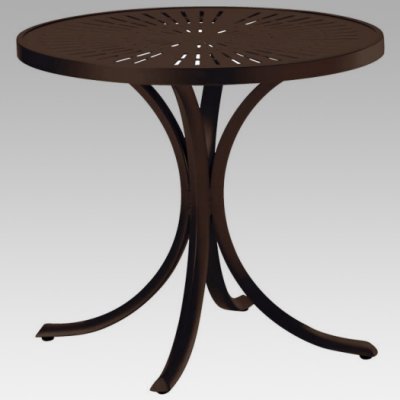 Shop for Patio Furniture USA from PatioFurnitureUSA.com! Rest assured you're getting the best of the best when you order the Patterned Aluminum Patio Table by Tropitone. Built by tube-in-tube construction and featuring full-circumference welds this table is built to last and is styled to be in vogue for many years. The patterned top adds a unique textured look to your patio space and this table is available in a wonderful array of sizes and shapes. You can choose from the hottest finishes to get the look you're going for. Finishes are hand applied for an overall effect that's as close to perfect as you can get. These tables feature umbrella holes so they're ready for shade.Important NoticeThis item is custom-made to order which means production begins immediately upon receipt of each order. Because of this cancellations must be made via telephone to 1-800-351-5699 within 24 hours of order placement. Emails are not currently acceptable forms of cancellation. Thank you for your consideration in this matter.Each piece of Tropitone patio furniture has been given careful attention to scale proportion and ornamental detail. The results are designs that tempt today and delight with timeless design tomorrow. Each piece is hand crafted and hand finished. It begins with the frame the foundation of the furniture; bending or casting the highest quality aluminum extrusions and ingots. Elegance and beauty are applied to the surface of the frames with hand applied powder coat finishes and patinas. Durability supports beauty with double wrapped vinyl frames tube-within-a-tube construction and full circumference welds. Beauty meets comfort with hand tailored cushions and sling seats to complete each stylish piece. With any Tropitone design you purchase you can be sure that it has been touched inspected and enhanced dozens of times by people who care.About TropitoneTropitone brings you enduring quality and style through relentless innovation. They have changed the face of the Read more...