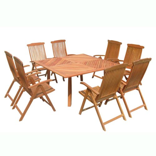 VIFAH Mahata A37051131SET1511 FSC Eucalyptus Outdoor Dining Set with Square Table and Eight Chairs Review