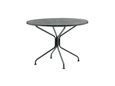 Woodard Woodard Wrought Iron 42" Round Umbrella Patio Table 4 Spoke is part of the Wrought Iron Tables and Bases collection. This wrought iron dining table features a wide selection of rich paint frame finishes.Each piece of Wrought Iron is hand-formed using solid iron stock to ensure the strongest furniture in the industry. The handcrafted technique used to create intricate iron details has been handed down from generation to generation.For over 140 years, Woodard craftsmen have designed and manufactured products loyal to the timeless art of quality furniture design and construction. Using both the age-old art of hand forming and the latest in high-tech manufacturing processes, Woodard remains committed to creating products that will provide years of enjoyment. Read more...